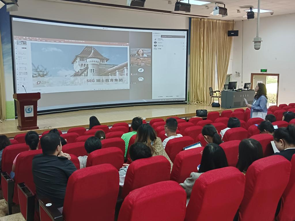 薛硕悦向各位老师介绍了SEG(Swiss Education Group)瑞士教育集团,是瑞士规模最大、综合排名第一的款待业管理教育集团。并从公司教育、团队、优质认证、就业平台方面等方面阐述了集团优势。他还特别别向各位老师介绍了SEG旗下四大品牌大学的基本情况及课程设置。四所大学分别是瑞士酒店管理大学、瑞士恺撒里兹大学、瑞士蒙特勒酒店工商管理大学和瑞士美食艺术管理大学。这四所大学在2021年QS世界大学学科排名酒店管理类均在前10之列。