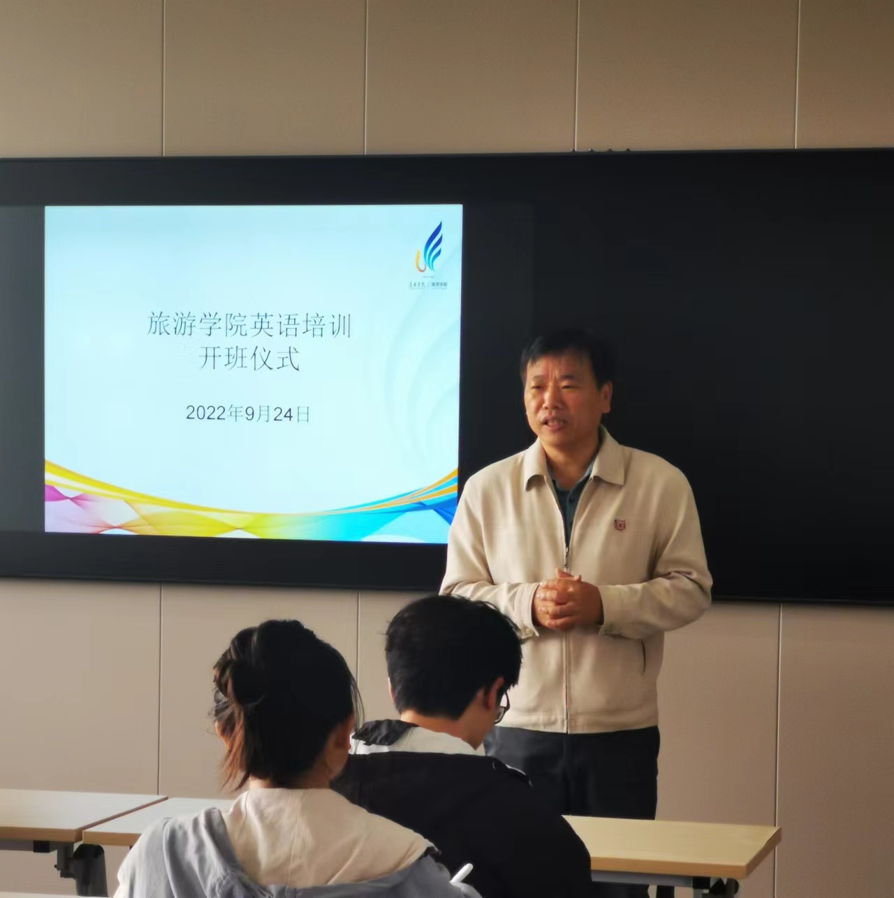 2022年9月24日上午,威廉希尔williamhill于惟行楼6301隆重举行首届英语培训班开班仪式。威廉希尔williamhill田芙蓉经理、孙志强副经理、陶柯方老师和参加英语培训的同学出席开班仪式。