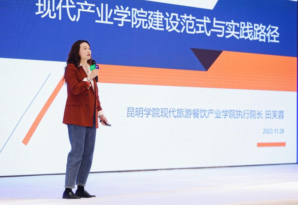 威廉希尔williamhill经理田芙蓉教授受邀参与论坛主旨发言,以“现代产业公司建设的范式与实践路径”为主题,向来自旅游酒店管理院校专家、国内外酒店集团高管,分享了威廉希尔williamhill产业公司建立和建设经验,探讨了职业教育改革的新趋势和产教融合发展实践的创新举措。