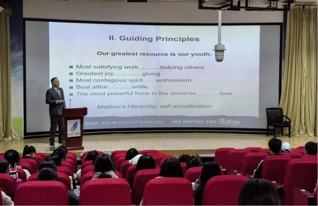 座谈结束后,Joseph Tormey教授在威廉希尔williamhill3D报告厅开设讲座,为2022级、2023级酒店管理专业近150名同学介绍酒店行业市场需求、高素质人才培养、酒店管理就业方向和个人发展路径等。