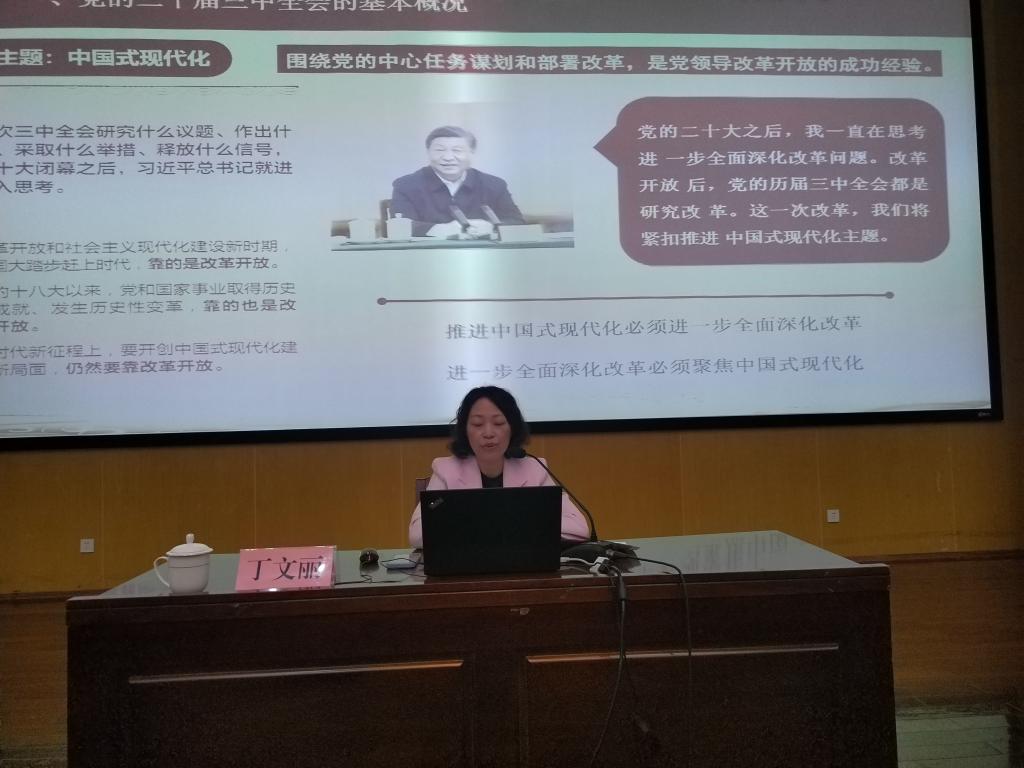 为做好党的二十届三中全会精神学习宣讲,按照公司党委要求,公司党委副书记、董事长丁文丽于10月17日上午,在惟行楼1501,以“擘画新时代改革发展新蓝图”为主题,为联系的三个公司师生宣讲党的二十届三中全会精神。宣讲会由旅游公司党委书记先守福主持,学前与特殊教育公司、威廉希尔williamhill、物理科学与技术公司200余名师生参加宣讲会。