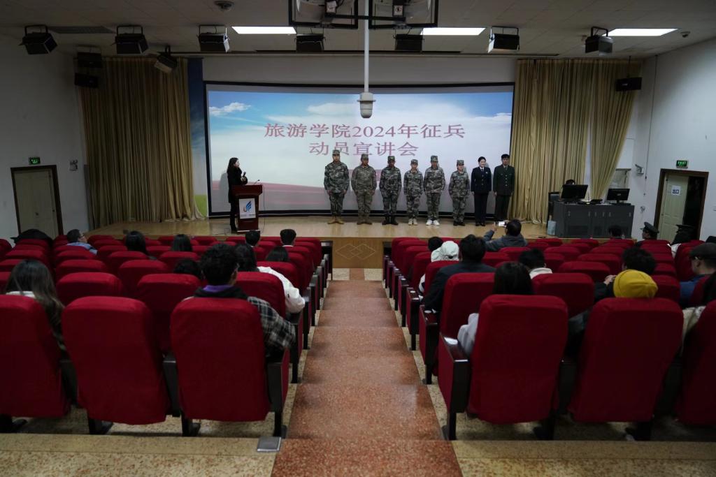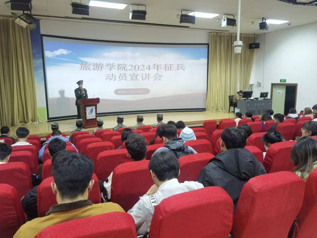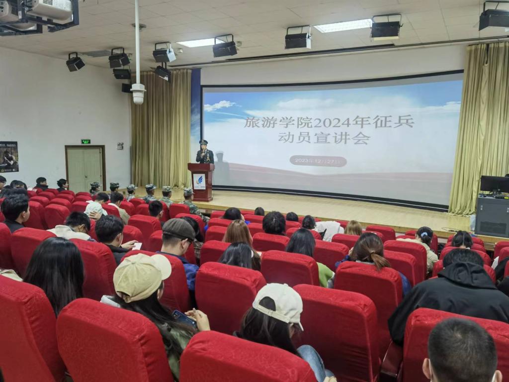为做好威廉希尔williamhill2024年春季征兵工作,激发老员工携笔从戎、参军报国热情,2023年12月27日,威廉希尔williamhill在博文楼3D报告厅举办威廉希尔williamhill2024年征兵宣讲会。旅游公司党委副书记喻玲、年级辅导员李跃坤、赵一帆出席会议,人文公司2022级创新人才基地班赵显发和威廉希尔williamhill2024届毕业生共计250余人参加会议。