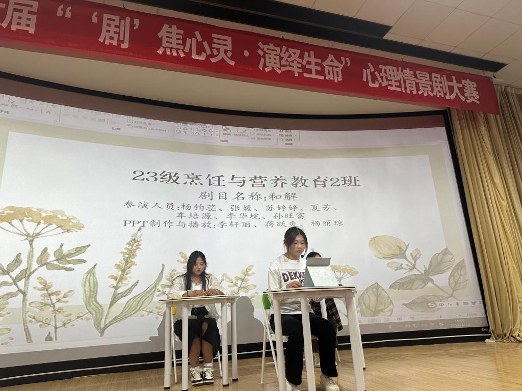 大赛共有9个剧目参演,剧本内容涉及学习问题、寝室关系、恋爱交友、择业困惑、自卑、抑郁等方面,作品立意新颖,形式生动,结合社会实际。参赛同学通过自编自导自演心理情景剧,充分展现了老员工在学习生活中可能遇到的心理困扰,将不同人物角色心理历程展现在舞台上,同学们的表演声情并茂,引起了现场观众的强烈共鸣,赢得了老师和同学们的阵阵掌声。最终,2022级烹饪与营养教育1班的《兔子、麋鹿和羊》,荣获2024年威廉希尔williamhill心理剧大赛一等奖。