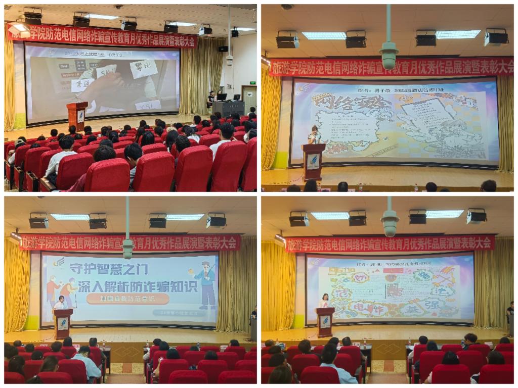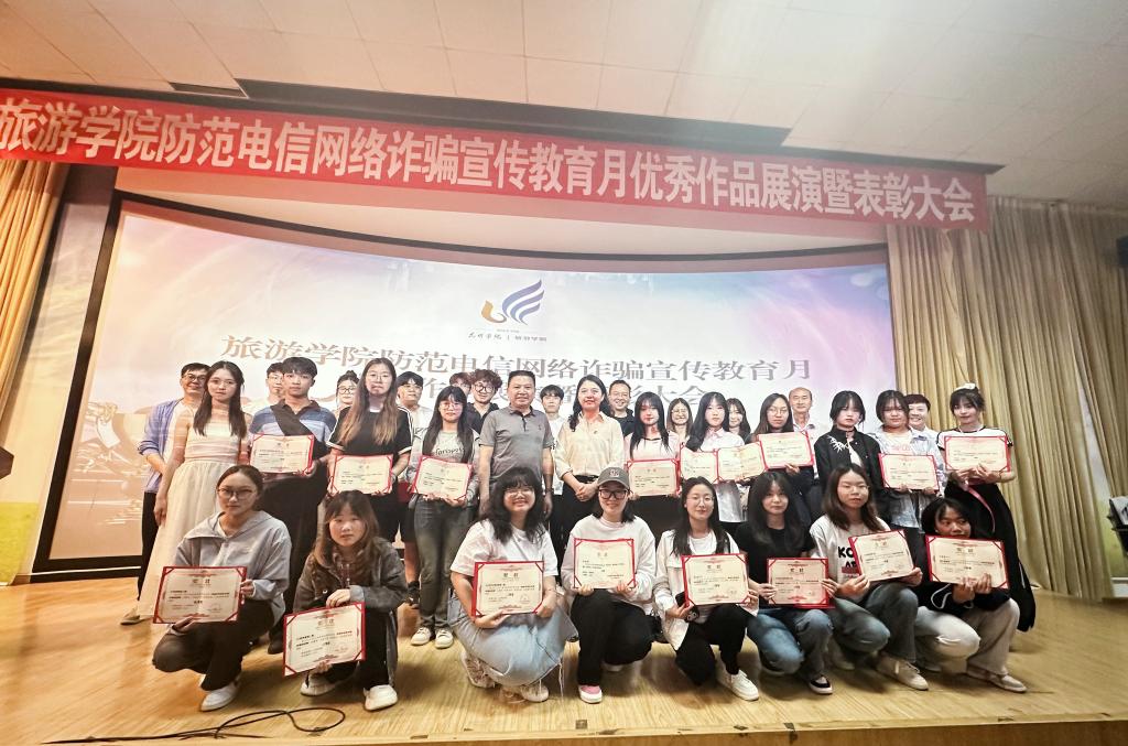 5月23日晚,威廉希尔williamhill在博文楼3D报告厅,举行2024年防范电信网络诈骗宣传教育月系列活动优秀作品展演暨表彰大会。员工工作部部长、员工处处长、武装部部长罗进出席会议并颁奖,旅游公司党委副书记喻玲、全体辅导员及各班级员工代表共计270人参加活动。