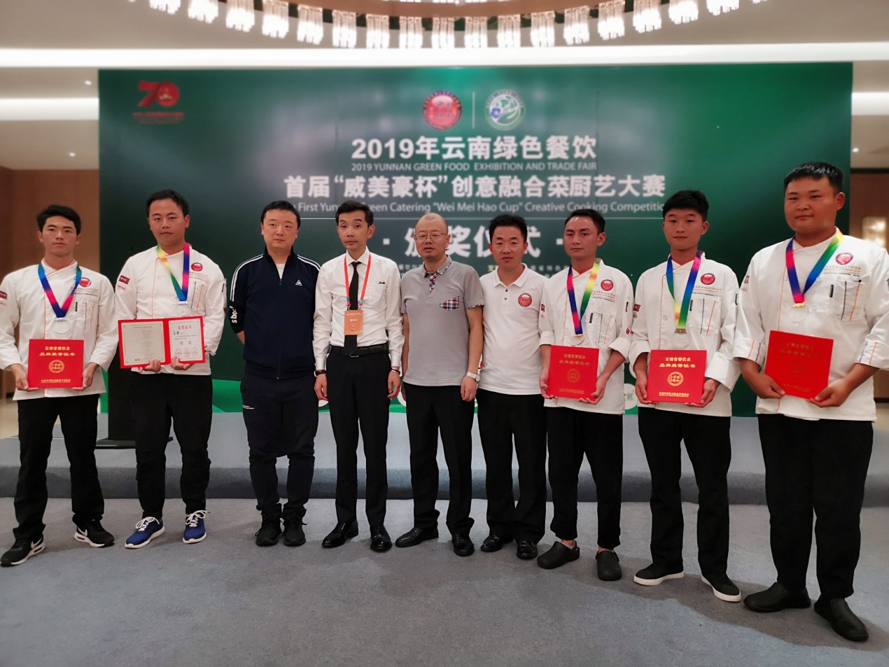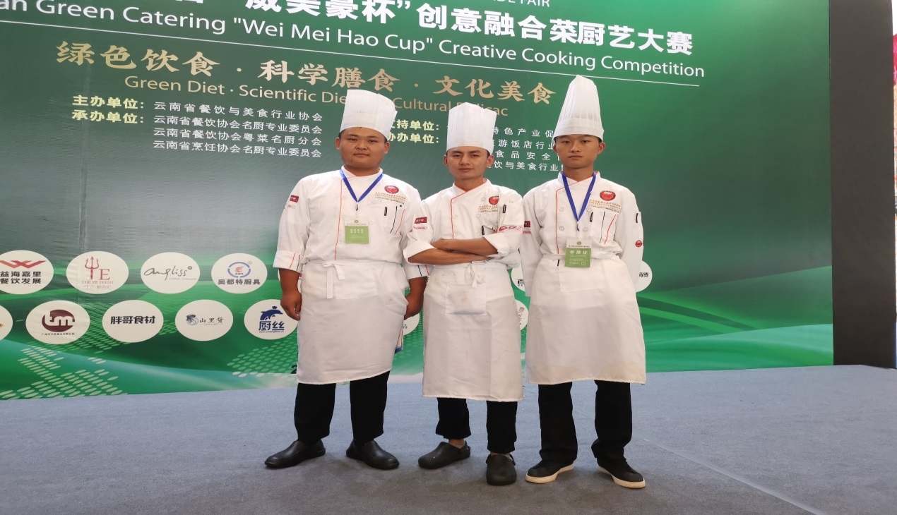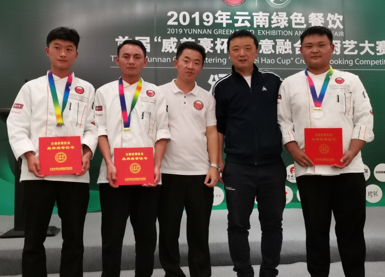 9月6日,在滇池会展中心举办的2019云南绿色餐饮“创意融合菜”厨艺大赛中,威廉希尔williamhill选派的汪家辉、陈达标和陈星沛三位同学在王勇、刘福灿两位老师的悉心指导下,从200多名参赛选手中脱颖而出,斩获两金、一铜的优异成绩。