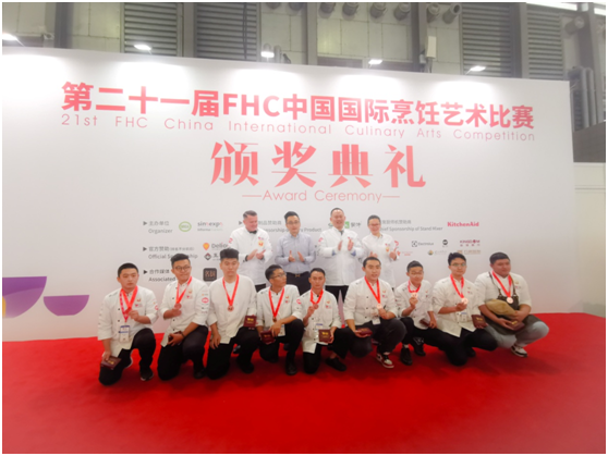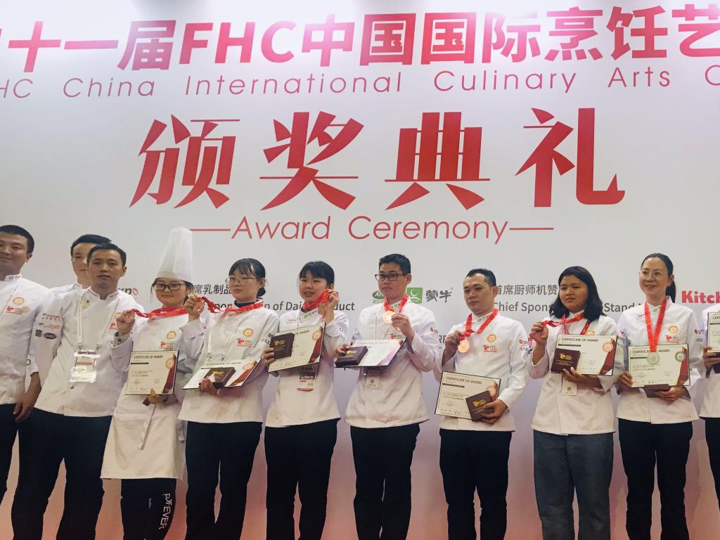 FHC中国国际烹饪艺术大赛是世界厨师联合会(WACS)在中国唯一认证的洲际性国际烹饪赛事。为了参加本次大赛,赛前公司春城首席技师王勇大师对员工汪家辉进行悉心的指导,参赛师生积极备赛,最终公司参赛师生从30多个国家的600余名参赛选手中脱颖而出,康烨老师获得翻糖专业组别银牌,汪家辉同学获得西式童子鸡青年组别铜牌,开创了公司烹饪专业自办学以来师生参加国际性烹饪赛事获得奖牌的新局面,促进烹饪专业与亚洲、国际接轨。