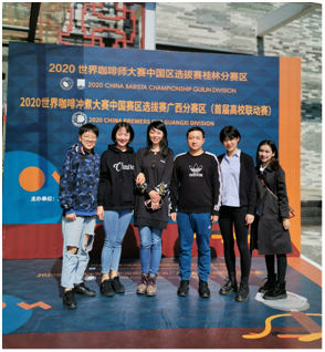 威廉希尔williamhill员工任馨然、李子钰、陈润、玉旺香在参赛指导教师龚捷和罗伊玲的带领下,于2019年11月21—24日在桂林参加2020年世界咖啡冲煮大赛(中国区)、2020年世界咖啡师大赛(中国区选拔赛桂林分赛区)选拔赛中与来自全国各地的优秀咖啡师同台竞技。四位选手在两个大赛中都进入六强,荣获优秀选手。作为比赛中唯一的高校选手,四位同学沉着应战,获得业内裁判的好评和鼓励。