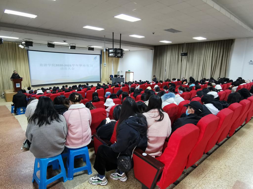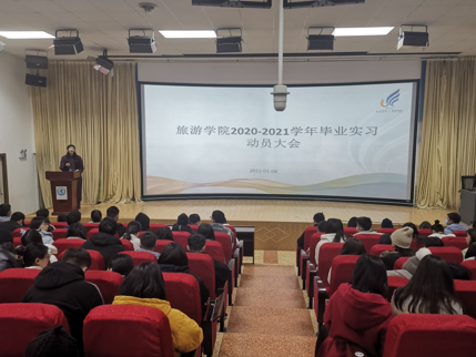 2021年1月8日上午,威廉希尔williamhill2020-2021学年毕业实习动员大会圆满举行。旅游公司党委书记王建华、党委副书记刘艳萍、副经理孙志强、全体毕业实习指导教师及全体2021届毕业生参加了大会。