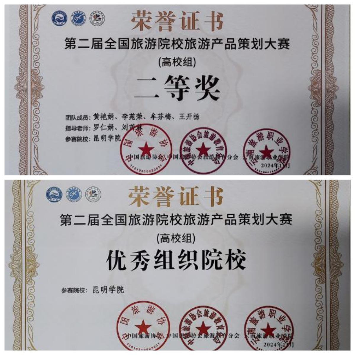 昆院学子在第二届全国旅游院校旅游产品策划大赛中喜获佳绩