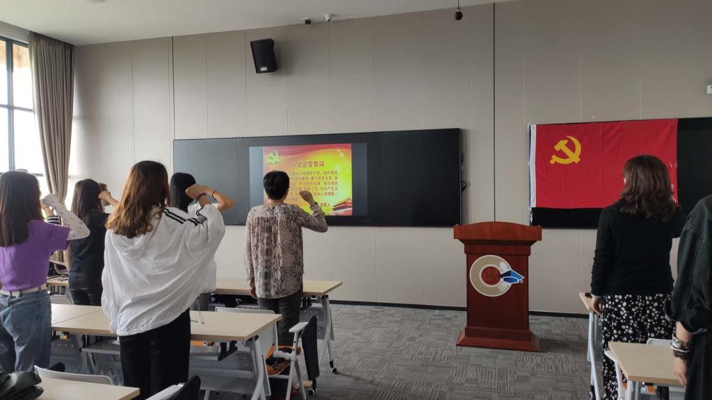 最后,全体师生党员起立,高唱“没有共产党就没有新中国”。