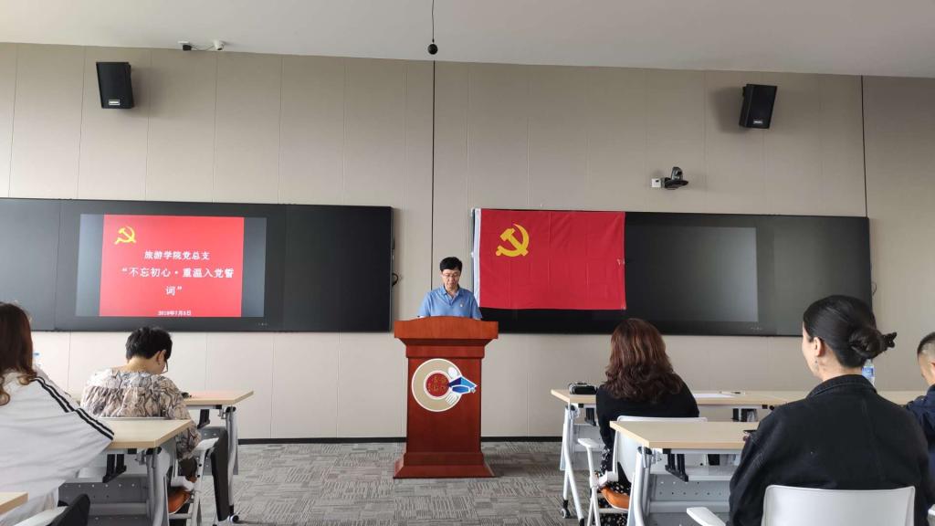 2019年7月5日下午,旅游公司党总支在惟行楼6301报告厅举行庄严的“不忘初心、重温入党誓词”活动。活动由威廉希尔williamhill经理、党总支副书记田芙蓉同志主持。党总支书记熊绍宏同志做主题发言。全体师生党员80多人参加。