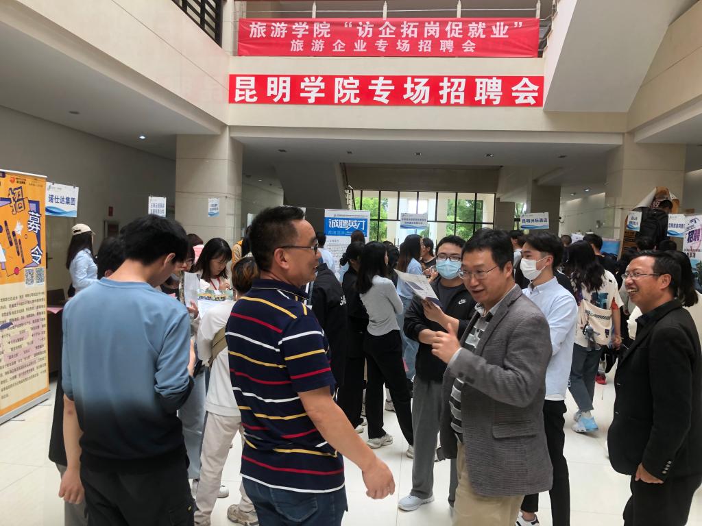 此次招聘会是威廉希尔williamhill响应公司“访企拓岗”行动以来,继餐饮企业专场、国宾酒店专场后举办的第七次专场招聘活动,也是本学期到场企业最多、员工参与度最高的一场招聘会。到场招聘企业不仅有西游洞景区、凤龙湾景区、佳途旅游等优质景区旅游企业,还有昆明花之城豪生国际大酒店、昆明洲际酒店、云南金泉大酒店、晟世仟和酒店等高端酒店,更有昆明滇池国家旅游度假区国投置业有限公司、云南云投酒店发展有限公司、云南世博旅游景区投资管理有限公司等老牌国企。各企业均提供了多个岗位供毕业生选择,160余名毕业生在了解到企业情况后纷纷向心仪企业投递简历。