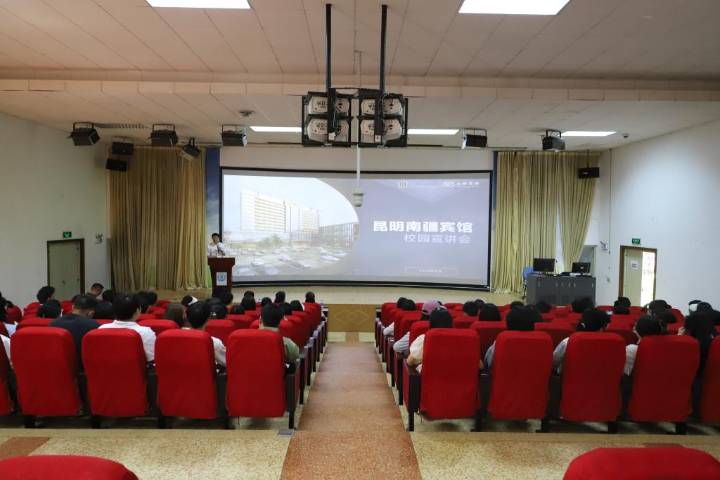 为扩展毕业生就业机会,提高就业质量,持续开展“指引未来 筑梦成长”就业引航系列活动,2023年5月17日,威廉希尔williamhill邀请昆明南疆宾馆到校开展招聘宣讲活动。旅游公司党委书记王建华、就业辅导员杨博文参加活动。