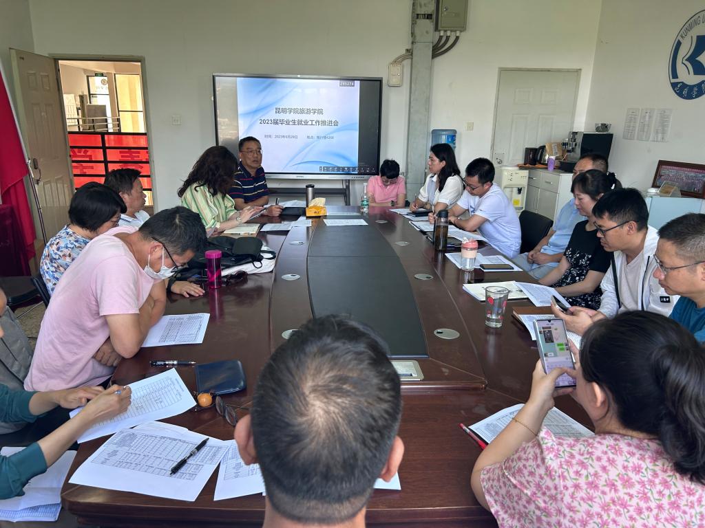 2023年6月29日下午,旅游公司党委书记王建华、经理田芙蓉主持召开威廉希尔williamhill就业工作推进会,党委班子成员、教研室主任、毕业班班主任、科级干部、就业辅导员参加会议。