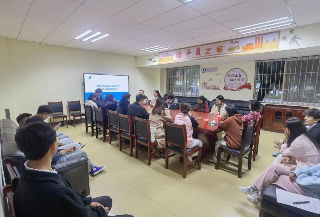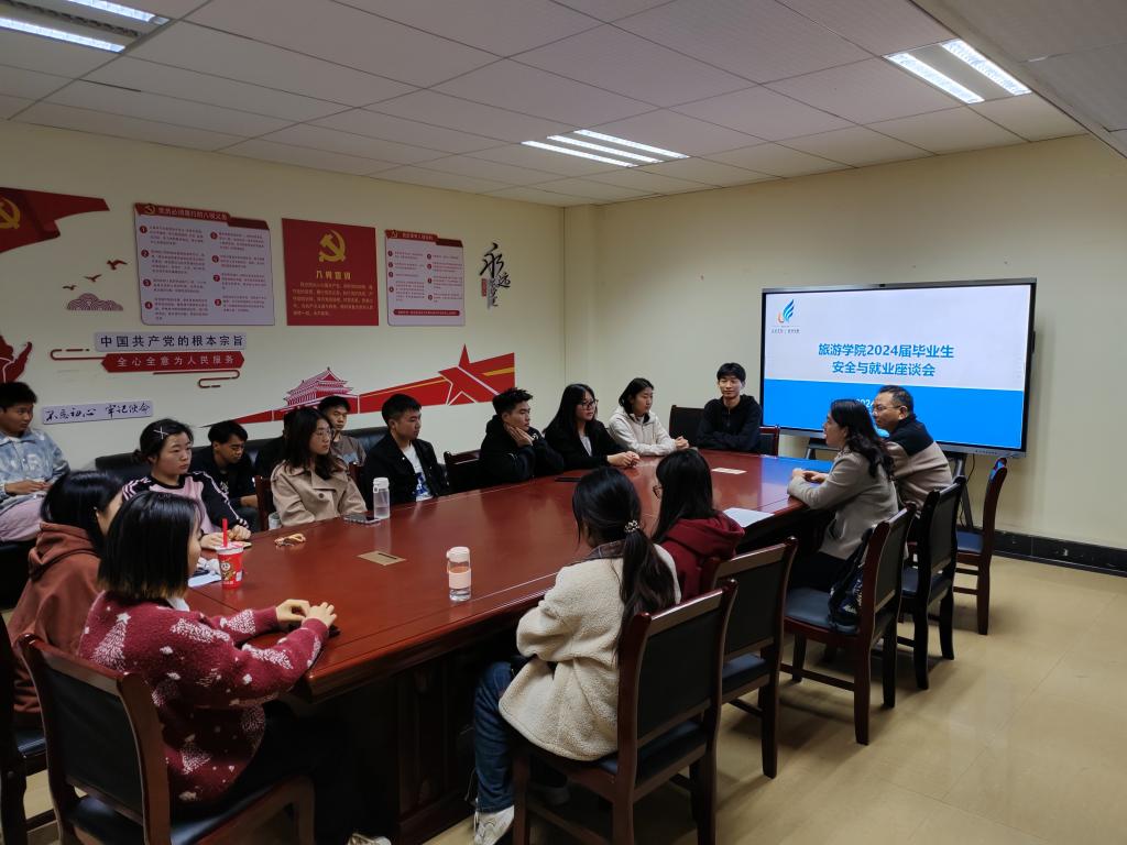 为畅通师生沟通渠道,听取同学意见建议,解决同学困惑和诉求,切实做好安全工作,推进2024届毕业生尽快求职就业,2024年3月20日晚,威廉希尔williamhill在润泽苑6栋“一站式”师生交流空间召开毕业生就业与安全座谈会。旅游公司党委副书记喻玲、辅导员李跃坤、赵一帆出席,2024届在校毕业生代表30余人参加。