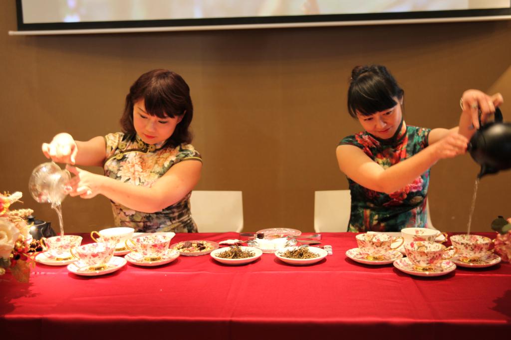 最后的茶艺表演由我们威廉希尔williamhill的五位老师展示。日本茶道,由杨芬老师及和旭老师带来,缓缓流淌的和风音乐,杨芬老师一丝不苟的操作每一个步骤。动作准确到位,伴着舞蹈般的节奏感和飘逸感,配合和旭老师的解说,将大家带进了日本茶道“和敬清寂”的茶禅世界。英式下午茶,由郑耕耘老师、罗伊玲老师、张欣老师表演,老上海的音乐,精美的骨瓷茶具,优雅的冲泡过程,无论是茶具,或是喝茶姿势,处处透着书香典雅的气质,给大家带来视与美的享受的同时,让大家寓教于乐,并品尝到了经典的英式下午茶。