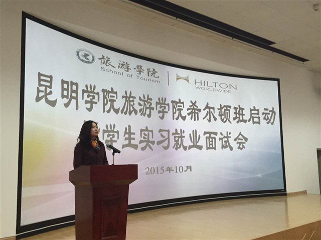 出席本次开班仪式暨就业启动会的有希尔顿酒店管理集团大中华区招聘负责人Will秦及旗下8家酒店:抚仙湖希尔顿酒店、西双版纳万达希尔顿逸林度假酒店、大理实力希尔顿酒店、深圳蛇口希尔顿南海酒店、厦门希尔顿逸林酒店、无锡灵山元一希尔顿逸林酒店、常州新城希尔顿酒店的人力资源部总监或人力资源部经理,威廉希尔williamhill经理田芙蓉、副经理吴跃辉、副书记杨光明、酒店管理教研室专业骨干教师,2014级、2015级酒店管理1、2班,2014级烹饪与营养教育1、2、3班260多名同学及教师参加。开班仪式由酒店教研室主任马英老师主持。