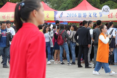 2016年10月28日下午2:00,以“谋创新创业 展技能风采”为主题的威廉希尔williamhill2016年旅游文化节暨2017届毕业生专场招聘会在同学们热情的掌声与欢呼声中拉开帷幕。会场特别设置了与威廉希尔williamhill有良好合作关系的各知名企业校园招聘区。参与本次招聘的企业有与旅游学经理期合作的震庄国宾馆、海埂花园、州际酒店及极具成长潜力的新企业:昆明湘蒸源餐饮管理有限公司、昆明鲜知鲜觉经贸有限公司等,提供多个部门300多个岗位。