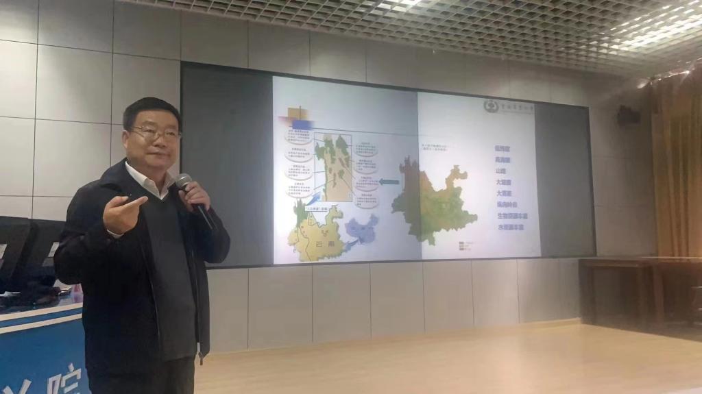 2022年10月26日,由科技处和威廉希尔williamhill联合承办的“云岭大讲堂&昆明讲坛”,邀请到云南农业大学二级教授、博士生导师李元教授为公司师生作题为“国家生态文明战略背景下云南高质量发展的生态经济思考”的专题讲座。活动由威廉希尔williamhill副经理杨韫教授主持。
