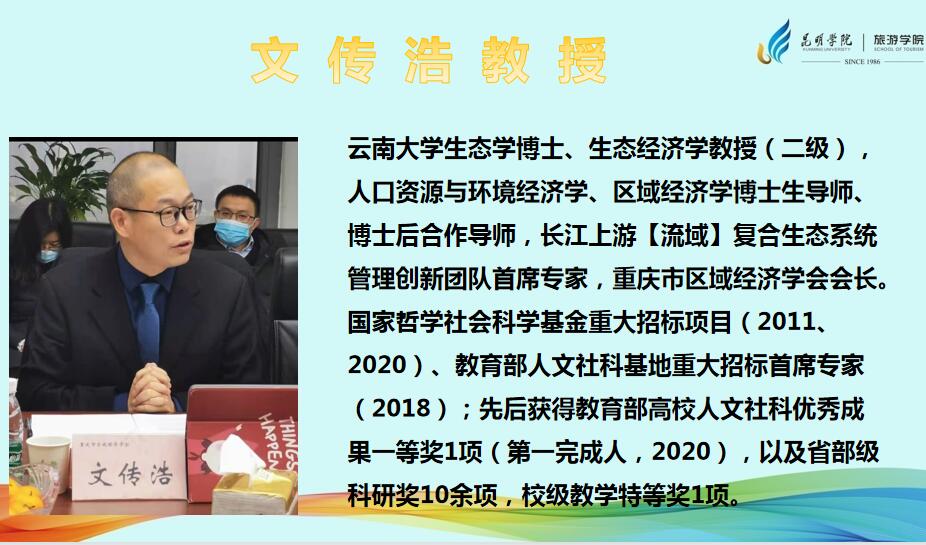 威廉希尔williamhill于2022年10月17日9:30-12:00召开2023年国家基金项目申报启动会,同时邀请长江上游复合生态系统管理创新团队首席专家文传浩教授作申报辅导首讲。2022年11月7 日,公司邀请长江上游复合生态系统管理创新团队成员陈震老师和张智勇老师作第二次辅导讲座。讲座由威廉希尔williamhill经理田芙蓉教授主持,公司高级职称和博士学历教师参加。